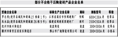 本報(bào)訊記者龔漢斌報(bào)道:近日,江西省質(zhì)監(jiān)局公布了近期對(duì)干壓陶瓷磚產(chǎn)品進(jìn)行省級(jí)產(chǎn)品質(zhì)量監(jiān)督抽查的結(jié)果。質(zhì)監(jiān)部門共抽查了51家生產(chǎn)企業(yè)生產(chǎn)的52批次產(chǎn)品,抽樣合格率90.4%。抽查結(jié)果表明,本次抽查的陶瓷磚其放射性核素限量指標(biāo)均達(dá)到了標(biāo)準(zhǔn)規(guī)定的要求;但仍有部分產(chǎn)品存在一些問題。