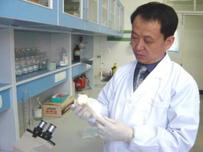 李寶興和同事們反復試驗,尋找臨床試用出現(xiàn)不良癥狀的原因,結(jié)果發(fā)現(xiàn),主要是因為原材料中的蛋白質(zhì)等的留存度過高。找到問題就可以對癥下藥了,怎樣才能使這些物質(zhì)的留存度最少呢?清洗是核心技術(shù),怎樣洗、洗幾遍才能洗干凈而不會損壞原有材料的骨結(jié)構(gòu)?李寶興和同事們反復試驗,反復清洗,終于掌握了一套不同時長、不同水流清洗的技術(shù)。